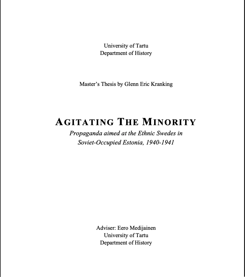 Propaganda aimed at the Ethnic Swedes in Soviet-Occupied Estonia, 1940-1941