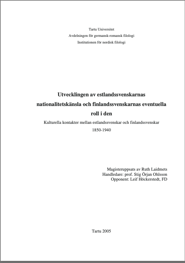 Utvecklingen av estlandssvenskarnas nationalitetskänsla och finlandssvenskarnas eventuella roll i den