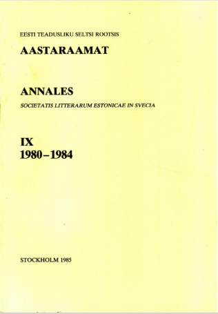 Aastaraamat Annales IX 1980-1984 BibNr: 648 Antal exemplar: 1 Finns i biblioteket på Wallingatan 34 Beskrivning Författare : Teknisk information FÖRFATTARE UTGIVEN 1985